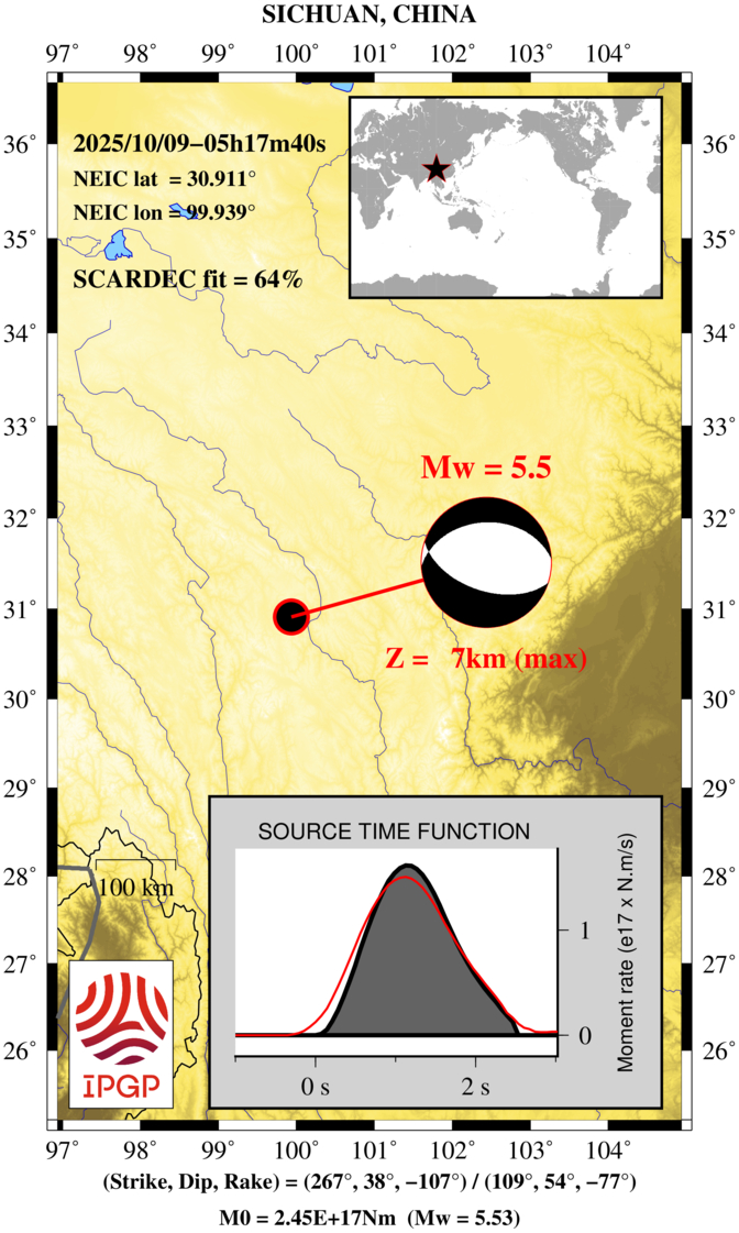 SCARDEC method: Analysis of the earthquake sourceSCARDEC method uses the teleseismic body waves to retrieve the depth, focal mechanism, moment magnitude and source time function of earthquakes with magnitudes larger than 5.5-6. Details of the methodology are described in Vallée et al. [2011] and an application to all earthquakes with magnitude larger than 6 in the period 1992-2011 can be found in Vallée [2013]. The consolidated SCARDEC catalog, with full access to earthquake parameters and source time functions, can be found here. See more information (about the data, the procedure, the reasons that could prevent from providing the earthquake information, the source time function determination...) in the "detailed notes" ![]() If using some of the SCARDEC results, please refer to: (1) Vallée, M., J. Charléty, A.M.G. Ferreira, B. Delouis, and J. Vergoz, SCARDEC : a new technique for the rapid determination of seismic moment magnitude, focal mechanism and source time functions for large earthquakes using body wave deconvolution, Geophys. J. Int., 184, 338-358, 2011. The method is running and maintained at IPGP laboratory. Apart from IPGP, past and present support to the development of the method are/were provided by the following institutes/projects :