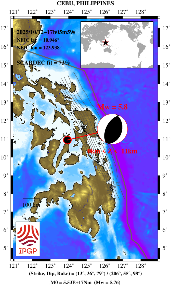 SCARDEC method: Analysis of the earthquake sourceSCARDEC method uses the teleseismic body waves to retrieve the depth, focal mechanism, moment magnitude and source time function of earthquakes with magnitudes larger than 5.5-6. Details of the methodology are described in Vallée et al. [2011] and an application to all earthquakes with magnitude larger than 6 in the period 1992-2011 can be found in Vallée [2013]. The consolidated SCARDEC catalog, with full access to earthquake parameters and source time functions, can be found here. See more information (about the data, the procedure, the reasons that could prevent from providing the earthquake information, the source time function determination...) in the "detailed notes" ![]() If using some of the SCARDEC results, please refer to: (1) Vallée, M., J. Charléty, A.M.G. Ferreira, B. Delouis, and J. Vergoz, SCARDEC : a new technique for the rapid determination of seismic moment magnitude, focal mechanism and source time functions for large earthquakes using body wave deconvolution, Geophys. J. Int., 184, 338-358, 2011. The method is running and maintained at IPGP laboratory. Apart from IPGP, past and present support to the development of the method are/were provided by the following institutes/projects :