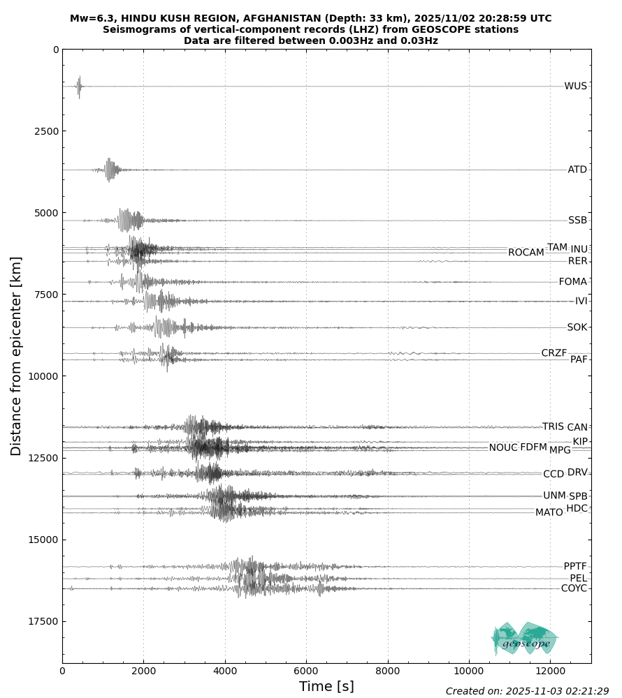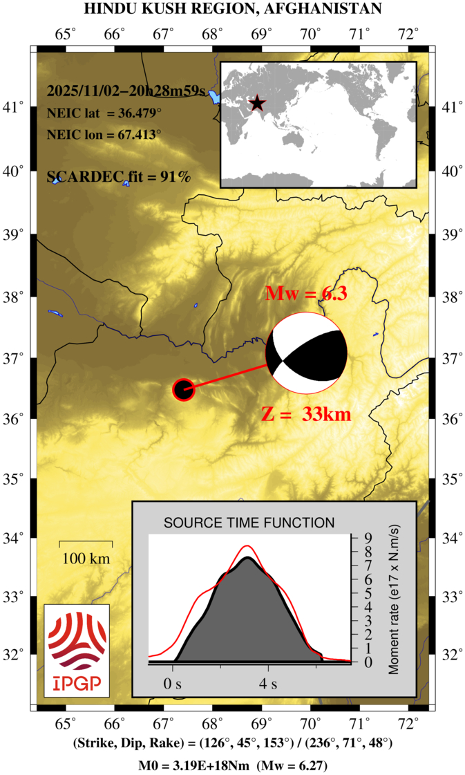 HINDU KUSH REGION, AFGHANISTAN 2025/11/02 20:28:59 UTC,  Mw=6.3