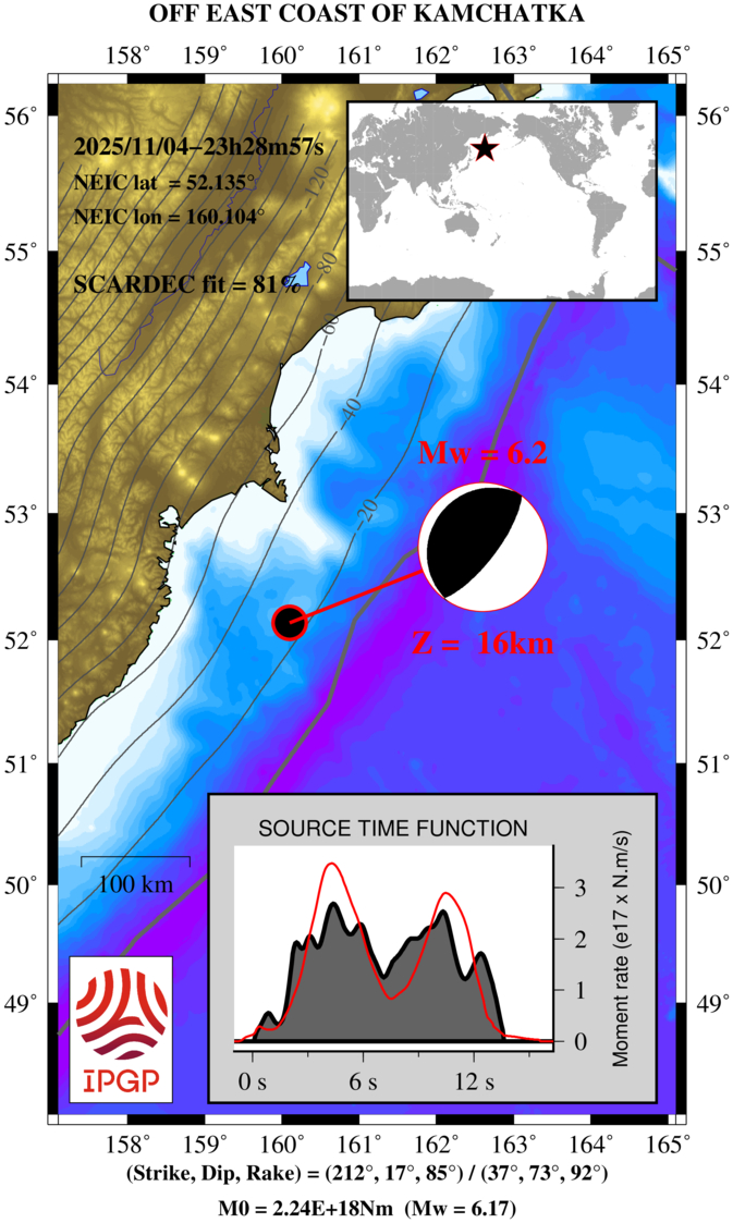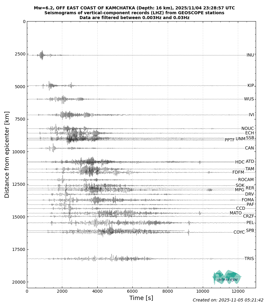 OFF EAST COAST OF KAMCHATKA 2025/11/04 23:28:57 UTC, Mw=6.2
