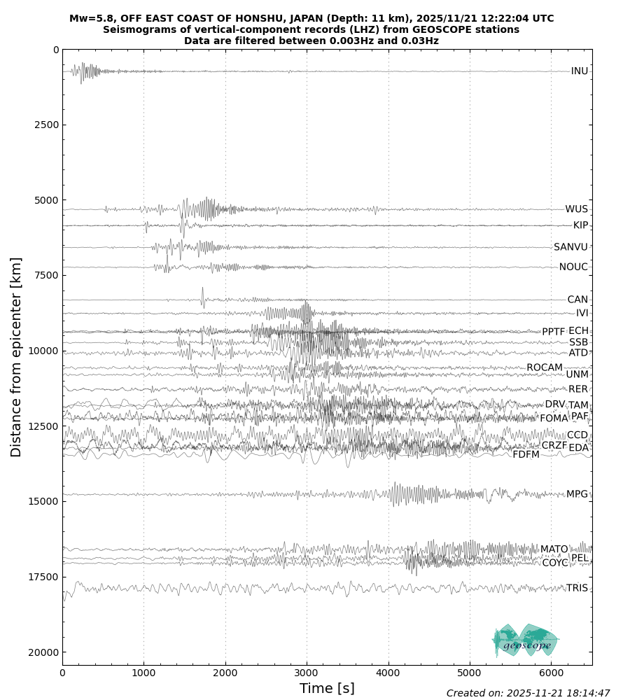 OFF EAST COAST OF HONSHU, JAPAN 2025/11/21 12:22:04 UTC, Mw=5.8