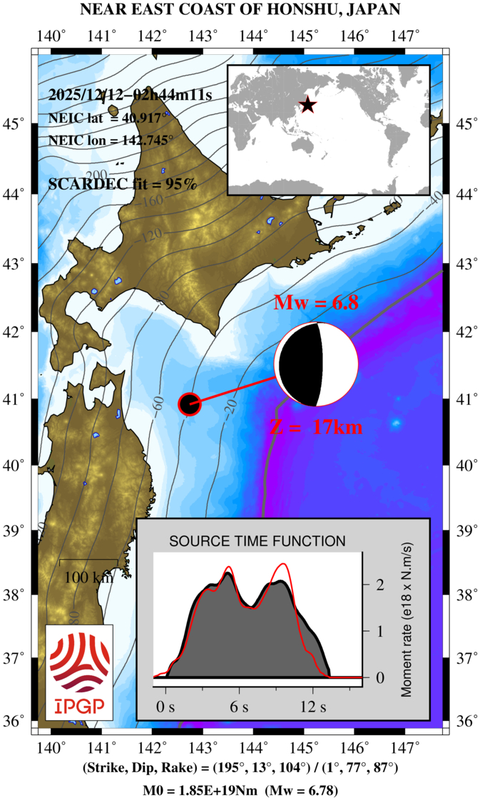 NEAR EAST COAST OF HONSHU, JAPAN 2025/12/12 02:44:11 UTC, Mw=6.8