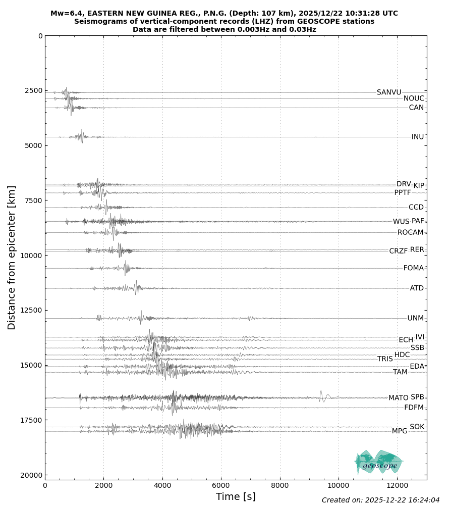 M6.4 - EASTERN NEW GUINEA REG., P.N.G. - 2025/12/22 10:31:28 UTC | Geoscope