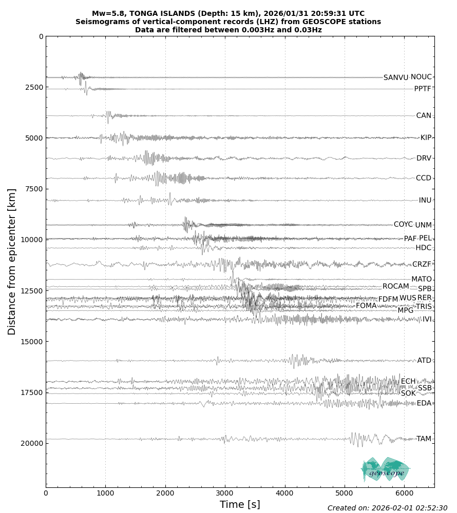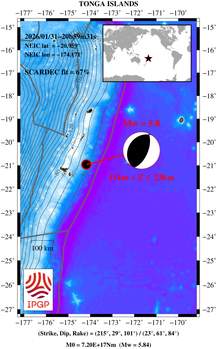 M5.8 - TONGA ISLANDS - 2026/01/31 20:59:31 UTC | Geoscope