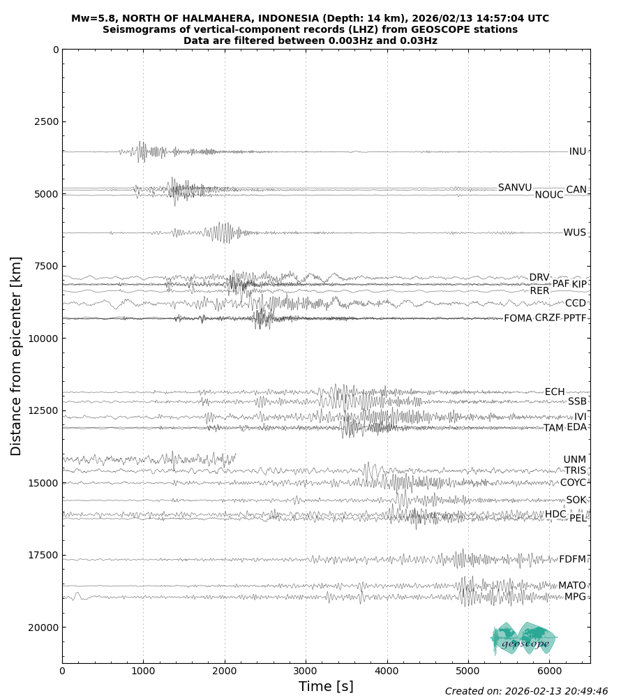 NORTH OF HALMAHERA, INDONESIA 2026/02/13 14:57:04 UTC, Mw=5.8
