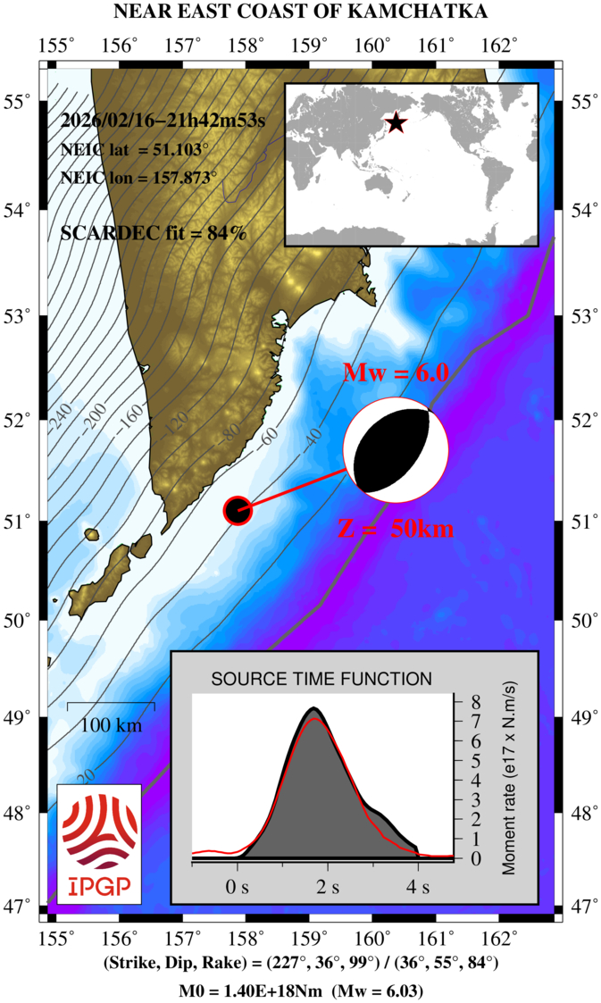 NEAR EAST COAST OF KAMCHATKA 2026/02/16 21:42:53 UTC, Mw=6.0
