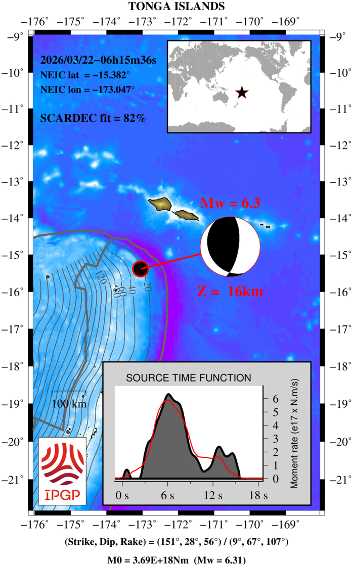 TONGA ISLANDS 2026/03/22 06:15:36 UTC, Mw=6.3