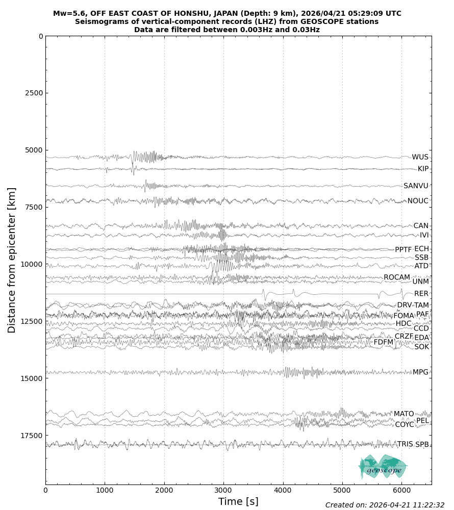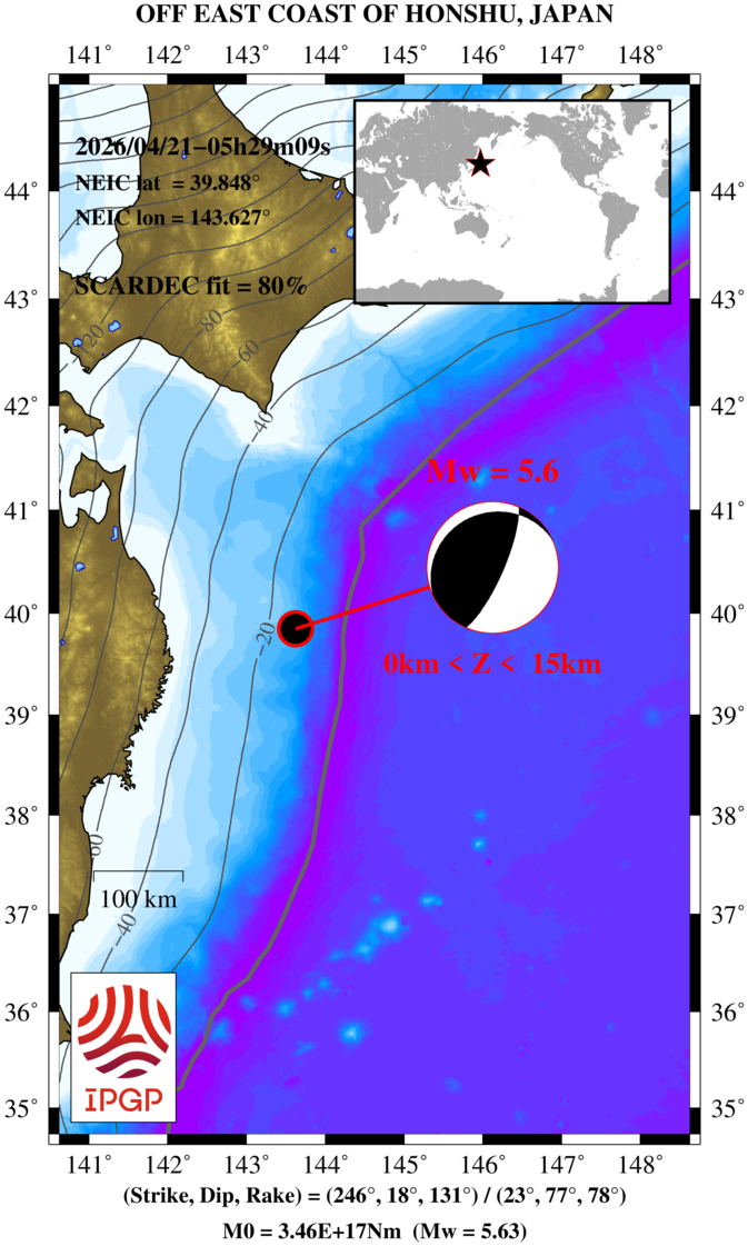 OFF EAST COAST OF HONSHU, JAPAN 2026/04/21 05:29:09 UTC, Mw=5.6