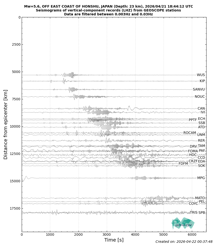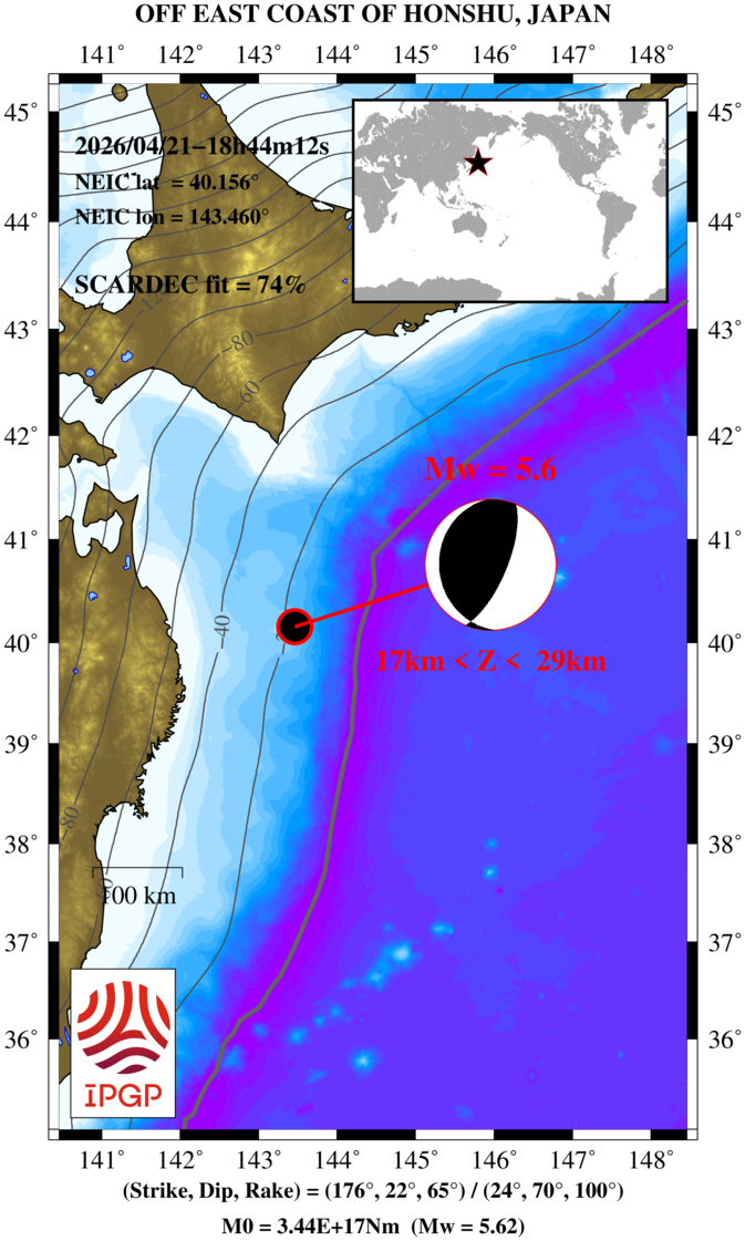 OFF EAST COAST OF HONSHU, JAPAN 2026/04/21 18:44:12 UTC, Mw=5.6