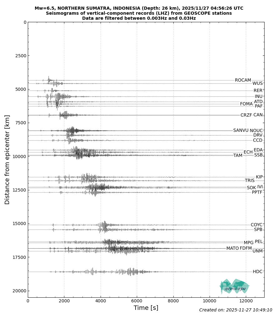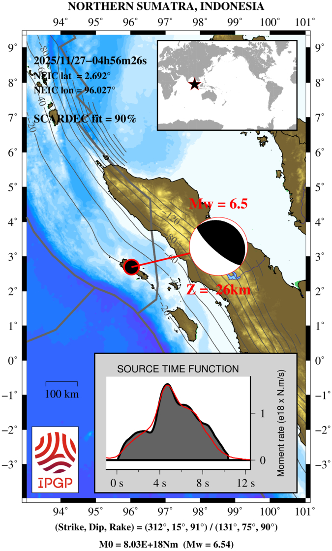 NORTHERN SUMATRA, INDONESIA 2025/11/27 04:56:26 UTC, Mw=6.5