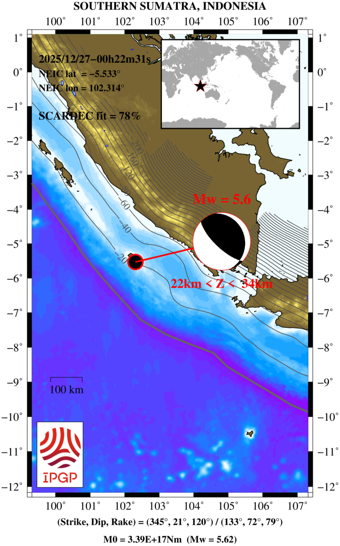 SOUTHERN SUMATRA, INDONESIA 2025/12/27 00:22:31 UTC, Mw=5.6