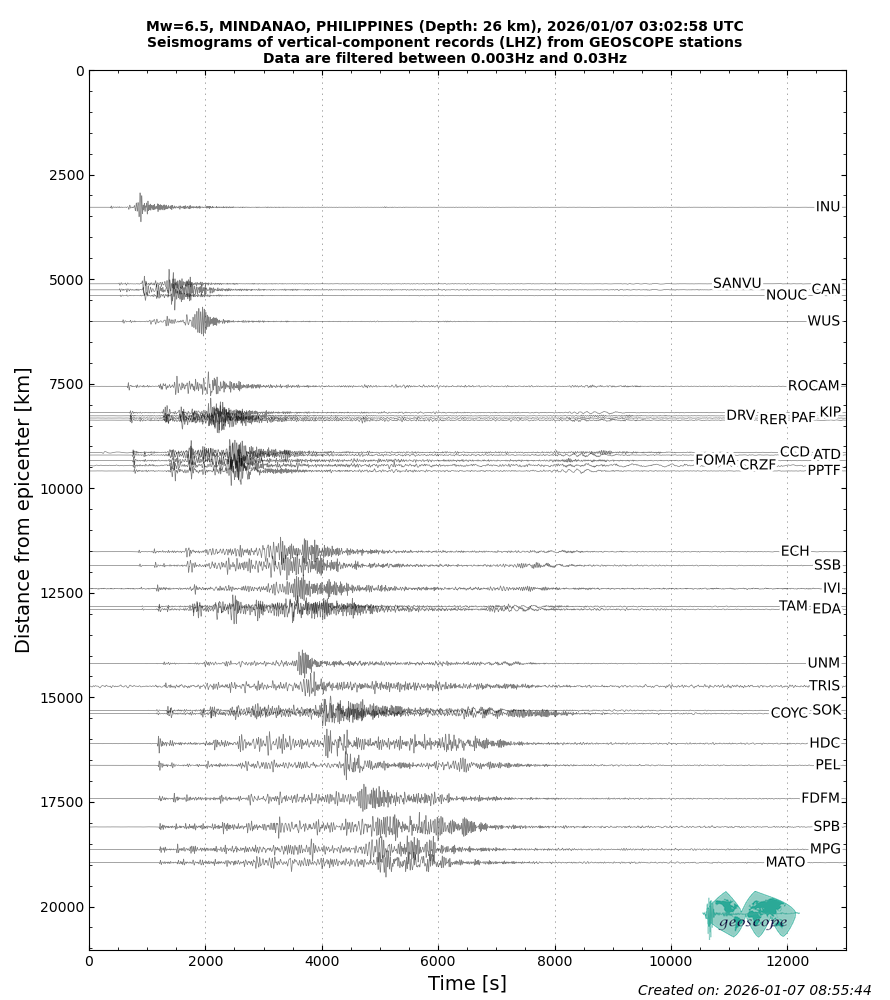 M6.5 - MINDANAO, PHILIPPINES - 2026/01/07 03:02:58 UTC | Geoscope