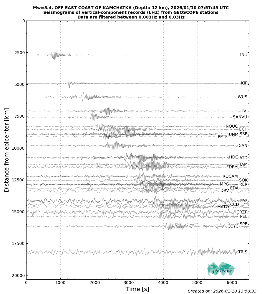 OFF EAST COAST OF KAMCHATKA 2026/01/10 07:57:45 UTC, Mw=5.4