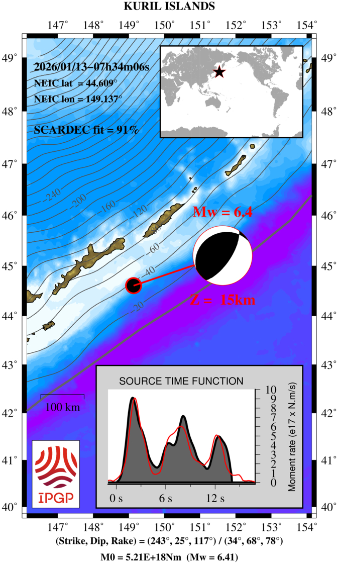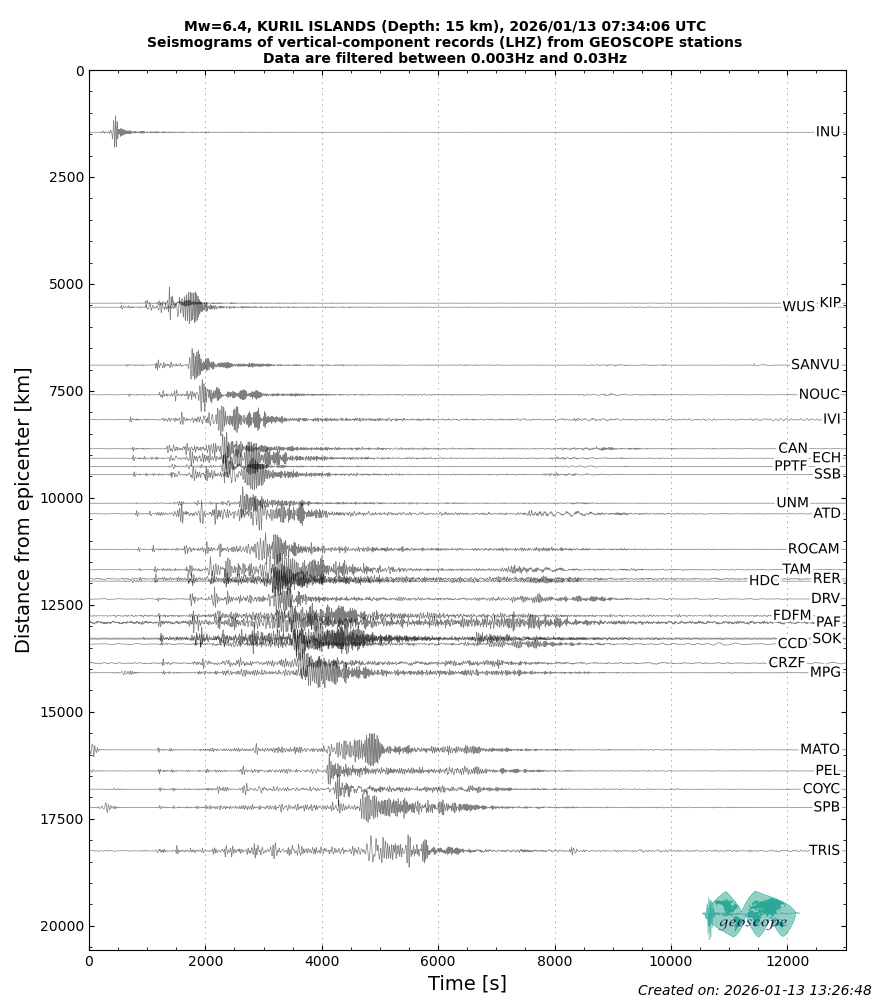 KURIL ISLANDS 2026/01/13 07:34:06 UTC, Mw=6.4