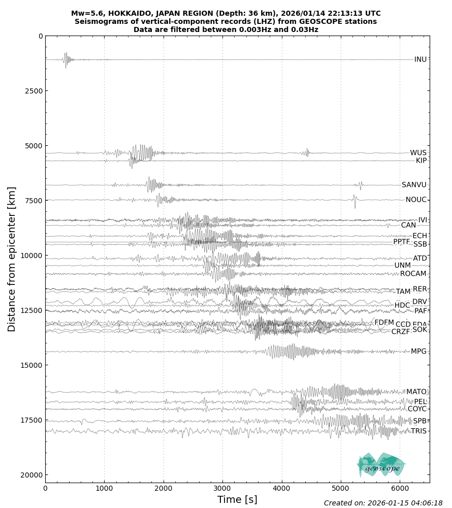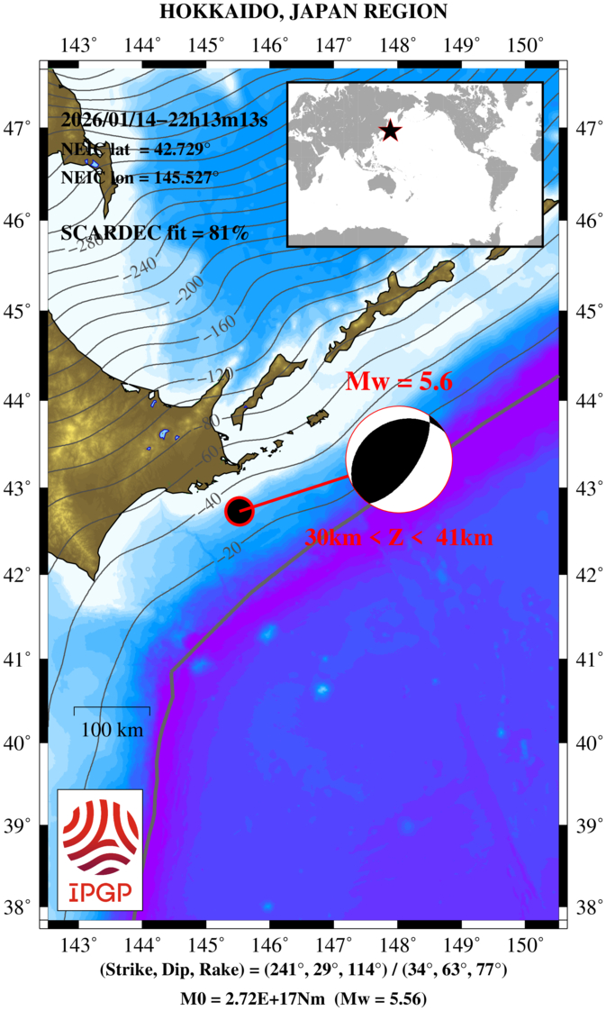 M5.6 - HOKKAIDO, JAPAN REGION - 2026/01/14 22:13:13 UTC | Geoscope