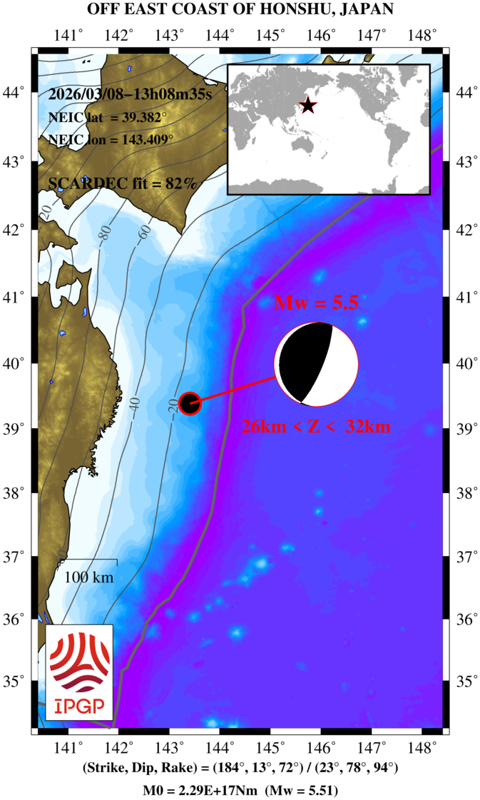 OFF EAST COAST OF HONSHU, JAPAN 2026/03/08 13:08:35 UTC, Mw=5.5