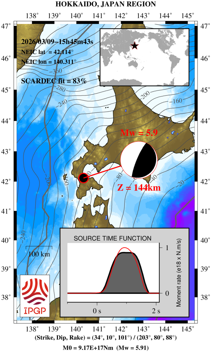 HOKKAIDO, JAPAN REGION 2026/03/09 15:45:43 UTC,  Mw=5.9