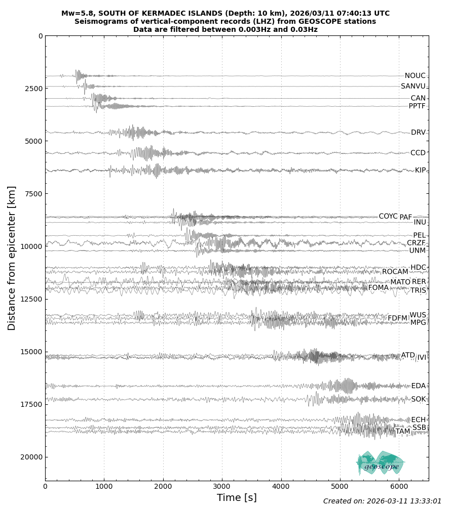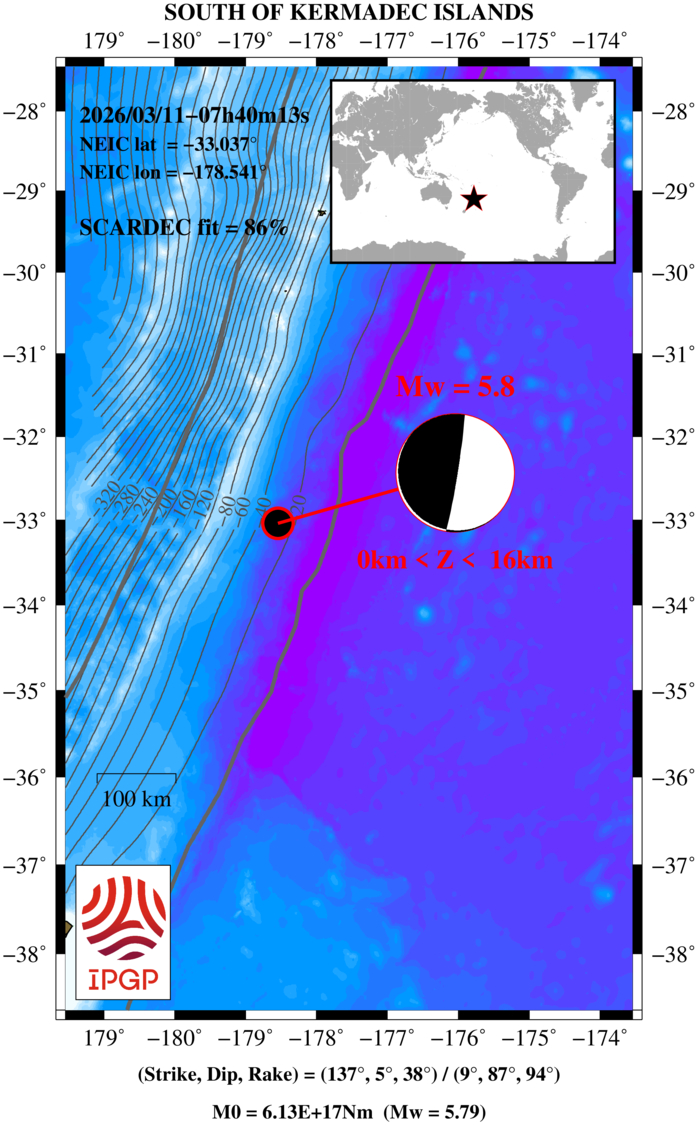 SOUTH OF KERMADEC ISLANDS 2026/03/11 07:40:13 UTC, Mw=5.8