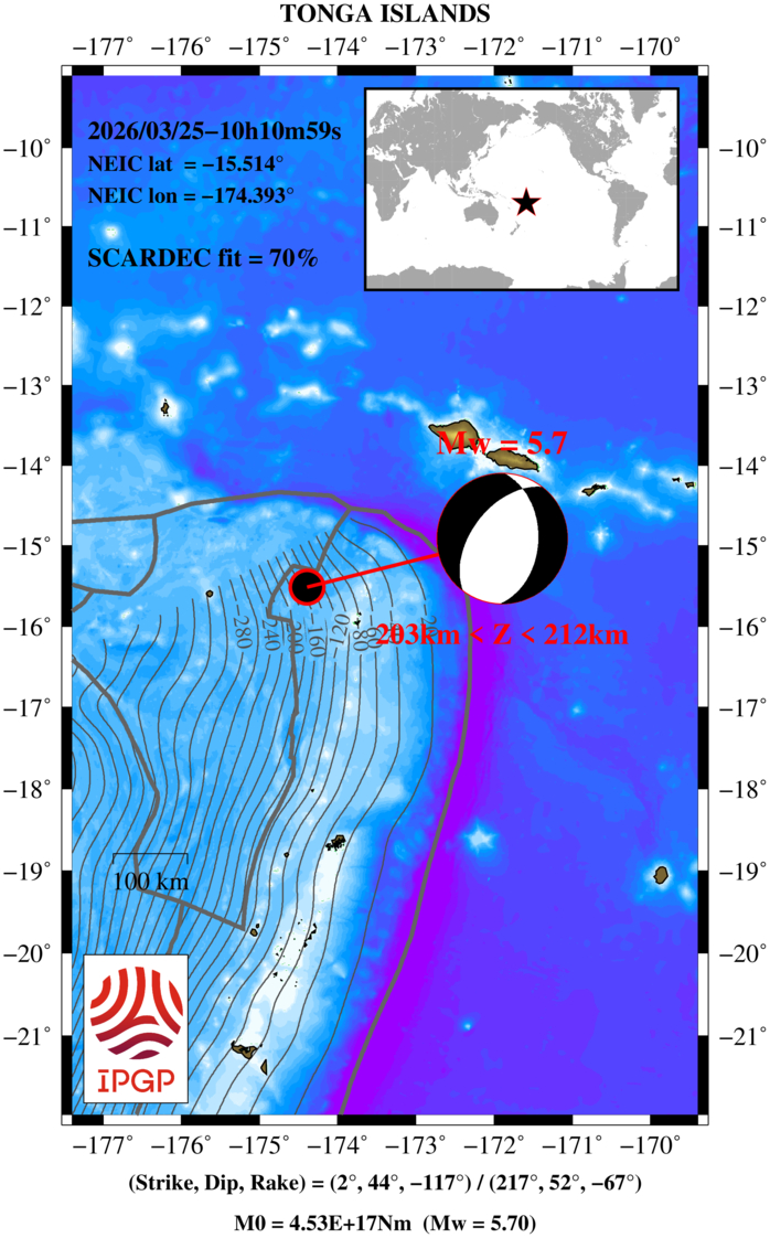 TONGA ISLANDS 2026/03/25 10:10:59 UTC, Mw=5.7