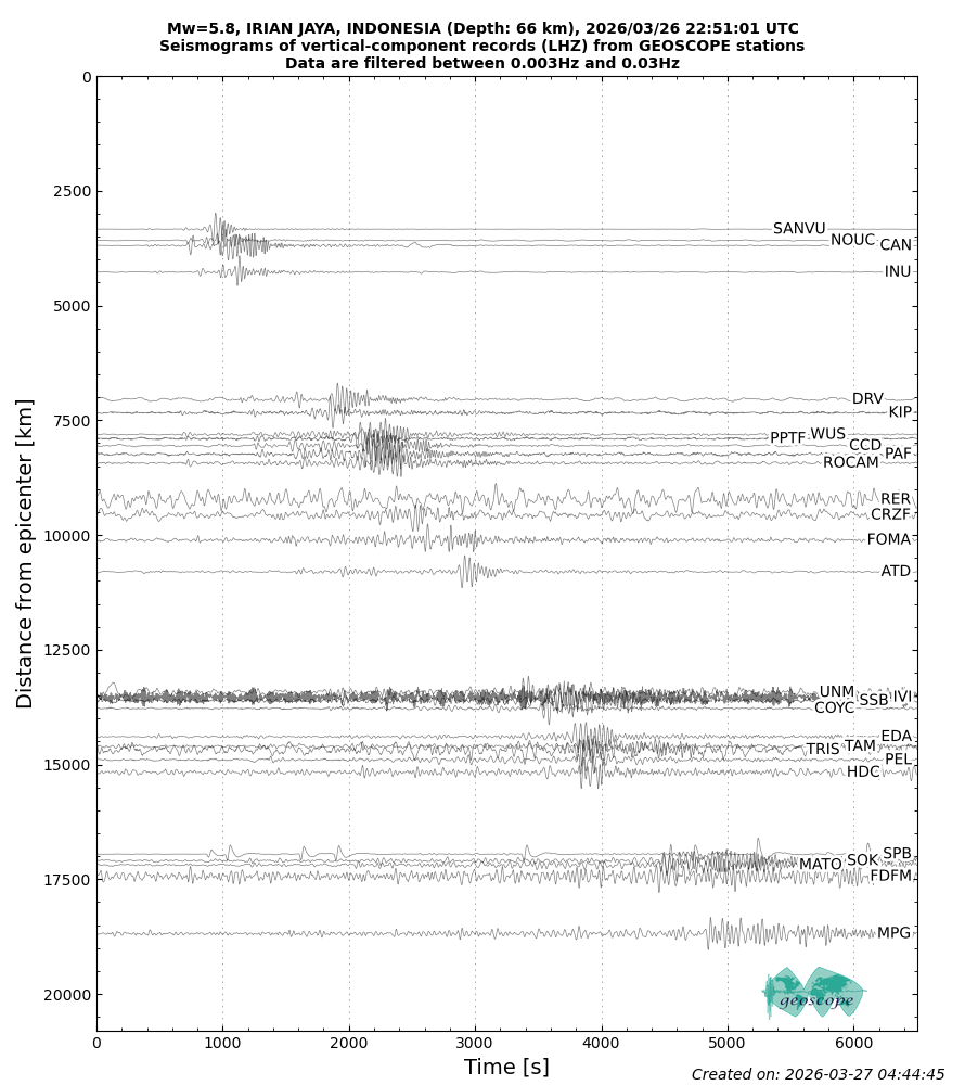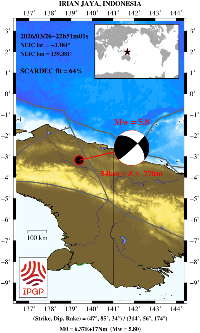 M5.8 - IRIAN JAYA, INDONESIA - 2026/03/26 22:51:01 UTC | Geoscope